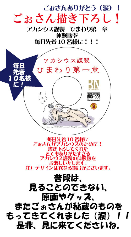 しかも、アカシウスで配布した「アカシウス謹製 ひまわり 第一章」もおまけで付けちゃうそうです。
