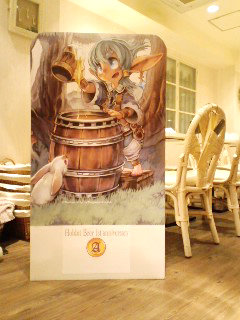 5月10日(月)〜5月16日(日) ホビット祭り 実は、5月2日で、アカシウス寄宿舎学園オリジナルビール ビール:ホビット族の爽麗ビール 700円 (ゴールド ビール) (この期間中は、200円引きで500円!!!) アカシウス寄宿舎学園のあるリーフェンベルクの近郊には勤勉で知られるホビット族の集落があります。 そんなホビット族の集落から彼らホビットが飲んでいたビールをカフェテリアにも提供して貰いました。 味は、爽快で麗らか(うららか)な感じのとてもあっさりした風味のビールです。 さっぱりとしているので女性にも飲みやすいかも。 他の二つのビールが濃厚なので、サッパリしたビールがお好きな方は是非。 ★アカシウス寄宿舎学園オリジナルのビール★ イラストレーター 村山 竜大さん(HP:http://ovopack.net/) 書下ろしのホビットのイラストをラベルにあしらった とても可愛いラベルのビールです。 アカシウスでしか飲めないので立ち寄られた時は是非!!!
