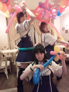 4月1日(金)〜4月30日(土) 頑張って日本 今、私たちに出来る事を考えて 3月11日より、売上げで生じた利益の5%を義援金として 寄付させて頂く事を決定しましたが、 4月1日よりに追加で、お店でアルコール1杯・1瓶、 ご注文頂いた毎に50円を、義援金として、日本赤十字社を通じて 寄付させていただく事を致します。 お酒を飲むことは憚られる、でも萎縮しすぎては、日本の為、 復興を頑張っている被災地の為にならないと思います。 小さいながらも、経済復興の一助となればと思います。 他にも、4月中に出来る事をいろいろ考えて行きたいと思います。 東北関東大震災に関するアカシウス寄宿舎学園の取り組み(リンク) 4月1日(金) アロマキャンドルナイト 3月28日より 今までのキャンドルナイトとは ちょっぴり違います。 生徒達が 植物や果実から抽出したアロマオイルを含んだ蝋燭をお席にお持ちいたします。 アロマオイルには、 ストレスを解消したり心身をリラックスさせる効果があるとのこと。 香りは日替わりでご用意いたします。 節電中のカフェテリア内ですが、 アロマの香りを楽しんで頂けたらと思います。 4月2日(土)〜4月8日(金) お花見ふぇすてぃばる 現実世界では、各地でお花見が中止になっておりますが 季節の風物詩として、やはりこの季節は花を愛でたいもの 桜に限らず、お花をたくさん集めて、皆で華やかな気分を味わいたいと考えています。 そこでお願いです。お花をご持参頂けないでしょうか? お花を持ってきて頂けたお客様は、チェキ撮影をプレゼント お花に囲まれて、お花と一緒に、チェキ撮影が出来たらと考えています。 またお花見といえば、お酒という事で 4月1日(金)からアルコール飲料1杯・1瓶に付き50円を日本赤十字社を通じて寄付させて頂きます。 という試みを始めましたが、せっかくなのでさらに がんばって欲しい地域のお酒を、この期間限定で、提供していく事にしました。 第一弾は、宮城県のお酒 『一ノ蔵 ひめぜん』 正確にゆうと、アルコール分が8%程度と低めなので、 日本酒って感じでは無いかもしれません。 この一ノ蔵のお酒で、女性向けに大人気になった発泡清酒の 『すず音(すずね)』を仕入れたかったんですが、手に入らず…、 『すず音(すずね)』の元となった『ひめぜん』を仕入れました。 日本酒というよりワインに近いフルーティなやさしい口当りなので、お酒の苦手な人も是非 『一ノ蔵 ひめぜん』(宮城県産) 小さいグラス売り 500円 ※生徒がお席に注がせて頂きます。 ※イベントの途中で、お酒の銘柄が変更になるかもしれませんが、事前にアナウンスします。 4月9日(土)〜4月17日(日) ※4月15日だけ卒業式の為イベントお休み 春に花咲く町娘のお茶修行イベント 緋の諸島には江戸という場所があり、そこの町娘達も春になると お花見の為か、お団子に合うお茶をうまくたてる為に修行をするとか、しないとか…。 そんな春の町娘の衣装に身を包み、お茶の修行をしてみようというイベント 江戸の町娘の衣装に扮した生徒達と、そんな生徒達がたてるお茶を、是非飲んでみてください。 基本のお茶修行セット(ポット) 300円 普段から気軽に愉しむ基本のお茶。 味がいまいち…だったら入れ直します。 緋の諸島伝統のお茶をたっぷり楽しむセット。 茶柱がたつのを期待して。 上級お茶修行セット 600円 お茶修行として、 お席で一生懸命生徒達が抹茶をおつくりいたします。 難しいお作法はなしにして、気軽に抹茶を 楽しんでみてください。みたらし団子と一緒に。 4月15日(金) イルマ・ラプンツェル・レトランジュ卒業式 詳細は後日Blogにて 4月18日(月)〜4月24日(日) ※23日卒業の時間はお休み バルーン・フェスティバル 最近、節電の影響で駅をはじめとして夜の街が暗いですよね。 気持ちを切り変えて明るくしたいけど、照明が暗いのはちょっと寂しい そこで、何か、店内も気分も明るくできるイベントは出来無いかと考えて バルーン・フェスティバルを行う事にしました。 店内に、暖色系の色とりどりのバルーンをモコモコ飾りつけてみました。 写真では解りづらいかもしれませんが、来店頂けたら、けっこうモコモコしています! こんな時ですが、せめて店内ではフェスティバルの気分を味わってみてください。 またイベント期間中、ご来店の皆様にも、生徒にも バルーンアートにチャレンジしてみてもらいます。 見たことはあるけれど、実際やってみることはないかと思いますので、 是非、一緒に挑戦してみてくださいね。 4月20日(水) 5月のカレンダー販売 5月カレンダーは、巣鴨へ。 テーマは古き良き時代を感じる巣鴨で制服。 だったので、選抜メンバーは、 黒髪で制服の似合うメンバーを 集めての撮影。 去年のカレンダーに引き続き、 今年も5月は制服です。 今回の見どころは、ルリカにつきます。 あまりに神すぎて、他メンバーとの調和が 取れず苦労しました。 ランダムについてくるシークレット版のルリカは、神々しい感じですので、是非見