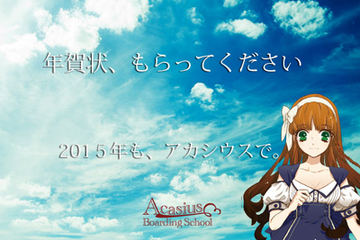 12月1日(月)〜12月7日(日) <12月4日をのぞく> 年賀状もらってください! 12月7日までの期間中にご来訪・お申し込み頂けると、 アカシウス寄宿舎学園より年賀状を受け取ることができます。 カフェテリアでお受け取りでも、郵送でも、無料です。 今年は、受け取りに来てくださった方には、お写真をプレゼントしますので、 是非受け取りに来てくださいね! この年賀状のための完全撮りおろし! 今年も可愛い年賀状にしたいと思いますので、是非、年賀状もらってくださいね。 12月4日(木) アリア・バースディ 詳細は後日Blogにて 12月8日(月)〜12月14日(日) 天使達の贈り物 毎年恒例ですが、少し早めに天使の衣装でお出迎え! 12月10日(水)〜1月3日(土) 特得チケット発売 年末と6月に販売している特得チケット 今年末も、12月10(水)〜1月3日(土)までの期間販売致します。 1回分お得な回数券、チェキ券付き、ポイント2倍 と3拍子揃ったチケットです。 『アカシウス寄宿舎学園 特得チケット』とは、 1時間滞在料金10回分の価格で −1枚分お得になり11回(11時間分)使え −さらにチェキ券が1枚付いてきて −購入時にポイントが2倍 なる大変お得なチケット 2つほど制限が付いてます。 -1日1枚のみ使用可能 -有効期限:2015年12月31日まで 有効期限は、あまり関係ないかもしれませんが一応1年間 何度か来られる予定があるなら買っておいて損は無いチケット 買ったその日にも使えるでの、何度か来訪予定ならぜったい買いです! 発売期間は、1月3日までか、売り切れるまでとなります。 12月14日(日) ミツキ・ティオ バースディ 詳細は後日Blogにて 12月22日(月) 深夜営業 12月22日(月)は朝5時まで営業します。 催し内容は後日Blogにて 12月15日(月)〜12月25日(木) キュートサンタとハンドベル 今年もハンドベル演奏行います。 12月15日(月)〜12月21日(日) アカシウス寄宿舎学園制服の正装にてお出迎え&ハンドベル演奏会 12月22日(月)〜12月25日(木) キュートサンタ衣装でお出迎え&ハンドベル演奏会 今年は、正装と新サンタ衣装で、ハンドベル演奏を行います。 ご来訪のお客様にも希望者は参加して頂けるんので 是非、皆様も参加してみてください。 是非、一緒にハンドベル演奏の共演が出来たらと思います。 ハンドベルの演奏は、1時間に1回10分程度になります。 12月26日(金) カレンダーROMプレゼント 毎月販売している卓上カレンダーを1年間買い続けて頂いた方への 秘蔵写真のCD-ROMのお渡しを26日よりさせて頂きます。 大変ご面倒ではありますが、2月〜12月分のカレンダー11枚を ご持参のうえ、生徒にお声をおかけください。 カレンダーに使用した写真と未公開の写真を収録。 カレンダーには出てこなかった場面や、シーンも。 みんなの成長も伺えます! カレンダーと一緒に1年を振り返ってもらえたらと思います。 買い逃してしまった月も在庫がございますので、 12月27日(土)〜12月31日(水) 来年1月のカレンダー 全員プレゼント 12月27日(土)〜12月31日(水)来年1月のカレンダー プレゼント 12月以外は、次の月の物を販売しているカレンダー。 この期間だけ、1月のカレンダーを全員プレゼントしちゃってます。 是非、一年の始まりを手にとってもらえたら幸いです。 12月28日(日)〜12月30日(火) コミケで買ってきたもの見せてください。 見せて頂けたら、一緒にチェキを撮らせて頂きます。 買ってきた物は、2014年12月の発行年月日の表記があるもの もしくは、コミックマーケット87の表記があるもののみ対応 12月31日(水) カウントダウン&深夜営業 12月31日(水)はカウントダウンを行った後、朝5時まで営業します。 催し内容は後日Blogにて 年末年始の営業時間 12月29日(月) 14:00〜22:30 12月30日(火) 14:00〜22:30 12月31日(水) 14:00〜05:00 1月1日(木) 16:00〜22:30 1月2日(金) 16:00〜22:30 1月3日(土) 11:00〜22:30 1月4日(日) 11:00〜22:30 1月5日(月)〜1月7日(水): 休業日(お休み) 焼き菓子の日: (毎週土曜、祝日) 毎週土曜日と祝日は、『焼き菓子の日』! 時間は未定(12時前後)なので、 学級日誌BLOGをチェックして、焼きたてを食べに来てくださいね。 アカシウス焼きたてベーカリーの日: (毎週日曜日) 焼き菓子の日だけでは飽きる…との事で始めた石鹸プレゼントでしたが やはりカフェなので、食べ物の方が良い・・・ との事で、日曜日は、『アカシウス焼きたてベーカリーの日』に 日曜日の朝に焼きたてのパンをご提供 有料ですが、とっても美味しいので、是非、召し上がってみてください。 それぞれのイベント毎の詳細は、こちらのWeb、もしくは学級日誌Blogで告知をしていきますので、ご期待ください。