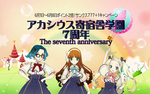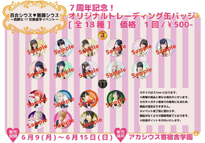6月1日(日)〜6月8日(日) ポイント2倍!サンクス!777円キャンペーン ☆ポイント2倍 ☆延長料金1回777+1円 アカシウス寄宿舎学園は、今年の6月で7周年を迎えます。 毎日、そして毎週、毎月いろいろな事に挑戦させていただき、 温かく見守っていただき、7年が経ち8年目を迎えます。 正直なところ、自分たち自身が一番驚いています。 もちろん、私たちが目指すものが完成されたわけではありません。 絶対にあきらめず、日々、精一杯頑張っていきたいと思います。 ささやかではありますが、 6月1日〜8日の間、ポイント2倍になります。 延長料金を1時間一律777+1円(税抜)になります。 アカシウスにいつもより少し長くいて、のんびりとしてもらえたらと思います。 ※1日つき1回のサービスとなります。 ※端数を避けるため+1円となりますこと、ご了承いただけましたらと思います。 ※延長に入るタイミングで、生徒にご相談ください。 今月のスイーツも復刻メニュー 6月1日(日)〜6月8日(日) ブレンダルおじさんのレアチーズケーキ 6月9日(月)〜6月19日(木) シュバルティ・パス 6月20日(金)〜6月30日(月) ミルルプリン 6月7日(土) ミィナ・バースディ 詳細は後日Blogにて 6月9日(月)〜6月15日(日) 百合シウス+薔薇シウス ごきげんよう! ついに6月突入!アカシウス寄宿舎学園も7周年を迎えました。 これも一重に皆様がご来訪し生徒達に会いにきてくださるおかげです。 ありがとうございます!(;∇;)♡ さて、7周年のこの機会にこんなイベントを開催させていただくことになりました!! その名も!! 「百合シウス、薔薇シウス〜危険な!?交換留学イベント〜」 おもしろ企画やオリジナルグッズ、スペシャルメニューなど このイベント限定の企画盛り沢山! この生徒日誌にて随時お知らせしてまいります!! ぜひチェックしてみてください!!(・`ω・) ではでは!交換留学イベントが どんなイベントなのか詳しくご紹介いたします!!( ゚∀゚)ノ 〜どんなイベントなの?〜 乙女たちが憧れのお姉様や可愛い妹たちを慈しみ、 イケメン男子たちが友達だと思っていた同級生に熱い想いを滾らせます。 アカシウス寄宿舎学園のカフェテリアで、 まさかの!同性同士の淡い恋物語をお楽しみください! 〜 注目ポイント! 〜 百合シウス、薔薇シウスということで普段の生徒達と一味違った演出になっています。 今回生徒たちは百合チームと薔薇チームに分かれています。 百合の生徒たちはきっちりとした「正装」で 薔薇の生徒たちは普段の可愛いらしい装いから一転して 凛々しい姿で皆様をお出迎えします。 普段なかなか見られない正装姿や男装姿にときめいてください!! 百合の生徒たちはよく見るとあのお姉様がまさかの下級生に?? 〜 はじまりのおはなし 〜 女子校である「アカシウス寄宿舎学園」へ、ドラコヌール王国にある男子校「王立竜騎士幼年(仕官)学校」から7人の交換留学生がやってきました。 普段は同性しかいないお互いの学校の生徒達。異性と過ごす日々もまた皇族になるためには必要な勉強です。 ですが!! 日々同性と過ごす時間が長かった生徒達は異性よりも、同性に興味があるみたい?! 生徒達が繰り広げる恋愛模様はどうなっていくのでしょうか…?!! 〜 王立竜騎士幼年(仕官)学校って? 〜 ドラコヌール王国の主戦力である竜騎士の 幹部将校候補を養成する為の全寮制の男子学校。 卒業生は卒業と同時に竜騎士隊の士官としてリーダーを勤める。 しかしながら女人禁制の全寮制の為か特異な校風を持つことでも知られている。 七周年記念イベント 「百合シウス、薔薇シウス〜危険な!?交換留学イベント〜」 から重大発表です!!! なんと! イベント前夜から7日間 アカシウス寄宿舎学園から毎日ツイキャス生放送をしちゃいます!!! 閉店後22:45ごろから15分 アカシウス公式Twitterアカウント(@AcasiusJP )でツイキャスを行ないます! そしてなんと、見てくださった方には素敵な特典も…!! ツイキャス中に発表される合言葉を翌日のイベント中に言って頂くと… なんと!ポイントを2ポイント、プレゼントしちゃいます☆ そしてさらにさらに! ツイキャスを見てはじめてアカシウスにいらっしゃったお客様には… ななななんと!!! 20ポイントプレゼント!!! この20ポイントで次いらっしゃった時にチェキを撮ることもできちゃいます!! 〜 交換留学生の生徒たち 〜 リーマス・エマ・グローテンドルスト グローテンドルスト家の次男。 末弟として可愛がられて育ったため、 なんでも自分の思い通りにならないと気がすまない。 困ったちゃんなワガママボーイ。 他の生徒と喧嘩になることも多い。 ミユ・ロンド・シルコパレス ドラコヌールの伯爵家出身。 気品に溢れ、立ち振る舞いは優雅だが、 自らが認めたもの(甘い物)以外には冷たい。 好物は汁粉。でもりんごもおいしいと思っている。 得意技はギモーブのものまね。