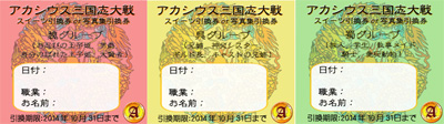 8月27日(水)〜9月1日(月) 夏休み自由課題のご協力のお願い 夏休みのないアカシウスの生徒たちに、宿題はありませんが、 生徒たちが成長するためにも、また新たな一面を発見するきっかけにも、 是非課題のご協力をお願いしたいと思います! 課題提供の条件 別料金のお飲み物、お食事、グッズ等500円以上のもの ひとつにつき1つサインをさせていただきます。 10個溜まると、指定する生徒ひとりに自由課題を出すことが可能になります。 具体例 ※好きな本を持参し、感想文を書いてもらう ※絵日記を書いてもらう 等 夏休みらしい自由課題であることが原則ではありますが、 可能性は無限大! 直接、生徒と交渉し、課題を決定してもらえたらと思います。 是非、お食事や飲みにアカシウスへ 9月2日(火)〜9月7日(日) 『イザラード王国のお茶を愉しむ』イベント カリメーヌ大陸北東に位置し、大陸内ではもっとも古い歴史を持ち、 その歴史の長さ から文化・芸術が盛んなイザラード王国。 歴史の授業でそのイザラード王国のかつての文化に触れた生徒達の間で、 かつてのイザラード故国で流行したという脚線美を強調するスカートに深いスリット の入ったドレスがちょっとしたブームに! 竜王戦争前にはカリメーヌ大陸の覇者でもあった王国の故宮を偲び、イザラード故国 の当時の衣装とスイーツやお茶などを提供するイベントを開催するはこびとなりまし た。 いつもとかなり違う生徒のドレス姿に胸を、ときめかせてみませんか? 9月8日(月) 休業日 9月9日(火)〜9月15日(月 祝日) 職業対抗アカシウス三国志対戦 職業毎に、魏呉蜀の3つのグループに分かれて毎日と累積で1位を競います。 毎日1位のグループに次の日以降使えるスイーツ無料券。 最終日に1位のグループに、引き換え券と交換にイザラード特製写真セットをプレゼント。 毎日、後日使える引き換え券を渡しておきます。 注意: イザラード特製写真セットはお一人様1セットのみのお渡しとなります。 勝利した日の引き換え券はスイーツ無料券として、 最終日に1位が確定したグループの引き換え券(いつの日のでも構わない)は写真セットとの引き換え券として使えます。 スイート無料券として使った場合、その場で回収し、写真セットとの交換は出来なくなります。 ◆職業毎グループ◆ 魏グループ: 忍び王子姫、男爵、身バレ王子姫、大賢者 呉グループ: 兄姉、神父シスター、ギルド長、キャスト兄姉 蜀グループ: 学生、執事メイド、騎士、愛玩動物、旅人 ※シルバーの人は各人好きなグループを選べます。ただし一度選ぶと後から変更できません。 ◆戦い方のルール◆ 来店されたら1日1回、自分のグループに1ポイント追加され、 さらに他のグループ(2つのうちどちらか通常勝ってる方)から1ポイント自分のグループにポイントを移動できます。 ◆例◆ 魏4 呉4 蜀6 の時、 魏のグループの人が来店、まず自分のグループに1ポイント付くので 魏5 呉4 蜀6 となり、さらに、他のグループから(2つのうちどちらか)1ポイント奪えます。今回は蜀から移動と言われたら 魏6 呉4 蜀5 となります。 グループが3つあるので強すぎるグループは必然的によくポイント引かれて、均衡が生じると思われます。 ※もし一方的な戦いになったら各グループの英雄が登場し戦場を乱す事があるかも?しれません。 9月16日(火)〜9月22日(月) リーフェンベルクの休日 おやすみクッキーを召し上がれ ベットに入る前の一時の戯れ。 リーフェンベルクも少し秋の訪れを感じる頃。 生徒たちは、秋の夜長に何をして過ごすのかな??? 寮でのおやすみ前を再現したナイトウェアを着用いたします。 おやすみクッキーセット 600円(写真付・ランダム) クッキーと甘くてふわふわのミルルのセット 生徒がお席でクッキーにメッセージをお入れいたします。 衣装は、写真よりも実際のほうが可愛いです。 是非、見に来てあげてくださいね! 9月20日(土) 10月のカレンダー販売 2014年は、365日アカシウス!オールスターズカレンダーです。 今年は、生徒全員で作る365日アカシウスというテーマで作成しました。 全員がお気に入りの写真を1枚づつ提供して作っていきます。 少し、季節がずれてしまうかもしれませんが、 日々を大切に、忘れない思い出として365日を綴っていきたいという想いから このような形になりました。 参加できなかったイベントの写真や 誰かの日常を垣間見たりすることもでき、 個性溢れるアカシウスを一枚で表現できるカレンダーです。 誰が撮ったか、誰の写真か当ててみるのも楽しいです。 今回の特典は、写真ではなく、 オールスターシールまるごと1枚お渡ししちゃいます! カレンダーでは、正方形にトリミングしてしまっているので、 このシール1枚で全体像が見れる!という とってもとってもお得なシールです。 是非、来月までにGETしてくださいね! 1部500円です。 2月〜12月すべて集めていただきますと、 スペシャルな特典をお渡しする予定です。 9月23日(火 祝)〜10月12日(日) 収穫祭 オクトー