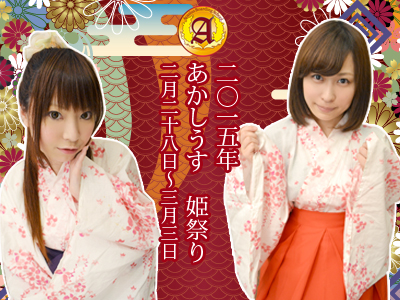 2月28日(土)〜3月3日(火) 姫祭 姫祭りはアカシウスでも一番の伝統と歴史を誇るイベントです。 素敵なイベントは引き継いでいきたいと思います! 今年は姫部だけでなくみんなに協力して貰いました。 特典の姫写真は配布される日が限られているので、確認してね! イベントメニュー 姫祭り特典写真ランダム被りなし1枚付 <限定ドリンク> ・姫茶 500円(税込) ノンアルコール ・桜物語 600円(税込)アルコール <限定フード> ・おしるこ600円 税込〈2月28日・3月1日限定〉 ・豚汁 600円 税込〈3月2日・3日限定〉 姫祭り特典写真全10種 2月28日・3月1日限定特典 ウキュラ・カトラ・香鈴・コハル・ティオ 3月2日・3月3日限定特典 アリア・ショコラ・ハナ・フィオナ・マリリア 写真もとっても可愛く仕上がりました! 3月4日(水)〜3月14日(土) C&C (チョコ & カード) ホワイト イベント 1来店につき1枚キャストの手作りオリジナルカード とホワイトチョコを1つお渡しです!! バレンタインデーの時と同じくこの期間限定の特別カードです。 今回も、みんなには寮に帰ってからの 宿題としてがんばってもらっていました。 チョコは手作りです!! ホワイトチョコですが、クランチタイプで食べやすいと思います。 キャストの手作りオリジナルカードですが ●1来店につき1枚ランダムのお渡し ●今月のスイーツをご注文頂いた方へも追加で1枚ランダムでお渡し ●Valentineのお返しを頂いた方へも追加で1枚ランダムでお渡し ●限定ドリンクを注文した方へ、希望カードをお渡しします。 イベント限定ドリンク ホワイトキャラメリーぜ 300円 今回も好きなカードを選べるので、ファイルから好きなものを選んでね 3月7日(土) フィオナ卒業式 詳細は後日Blogにて 3月9日(月) 一部商品値上げ 昨今の円安や原材料費高騰による小麦粉、乳製品を始めるとする材料費値上げに伴い 原材料費が著しく上がっております。 材料の中には、分量を減らした実質値上げで20%以上の値上がったものもあり 自助努力での価格吸収にも限界がある為、一部商品を値上げさせて頂きます。 中には、ポテチーのように、材料自体をより上質な物へ変更するものもありますので 何卒、ご理解頂けたらと思います。 コーンの焦がしチーズ焼き 371円から417円へ ファーマーズ・ビーフボール 463円から556円へ ポテトチーズ料理 通称:ポテチー 556円から602円へ ジュゼッペおじさんのソフトクリームチーズ 417円から463円へ 小麦畑のパンケーキ 417円から463円へ 3月14日(土)前夜祭 3月15日(日) 芸術部イベント 詳細は後日Blogにて 3月16日(月)〜3月22日(日) あなたのオリカク作ります! カクテル半額!練成レセプション 季節も良く、オリジナルのカクテルもそろそろ作り始めたい頃。 実践をまじえて上達したいと思います。 新入生は練習、生徒たちはゲストのためにオリジナルのカクテルをお作り致します。 そんなレセプションです。