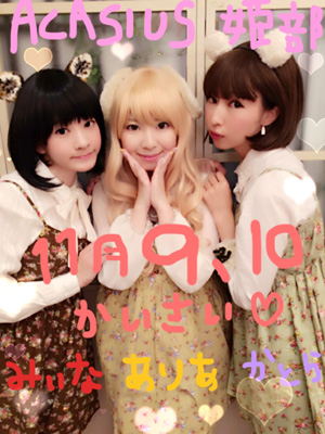 11月7日(土) 調理実習イベント 早番ティオ。遅番シノグ 11月8日(日) 調理実習イベント 早番サクナ、遅番ウキュラ 11月9日(月)・10日(火) 姫部イベント 今年のテーマは動物をモチーフに、けも耳を付けてイベントを行います。 ・すごろくゲーム(無限ループ)を行います。 ・1来訪に付き1枚シールお渡し。 ・ポイント制でマスを進めていきます。 詳細は後日Blog告知にて 11月11日(水) 調理実習イベント 香鈴 11月12日(木) 調理実習イベント アリア 11月13日(木) 調理実習イベント カトラ 11月14日(土) 調理実習イベント 早番マイコ、遅番マリリア 11月15日(日) 調理実習イベント 早番シオン 11月15日(日) イネス×カトラバースデーイベント 11月15日(日)遅番にて 2人で考えたオリジナルドリンクにお写真を付けさせて頂きます♪ お写真の衣装は2パターン(私服黒ver/私服白ver) イネスちゃんはアカシウスで迎える初のお誕生日です♪。 是非会いに来て頂けたらと思います。 11月16日(月) 調理実習イベント クララ 11月17日(火) 調理実習イベント ミィナ 11月18日(水)〜20日(金) 芸術部イベント 『シュバルティの生徒がアカシウス皇国に邪魔する時期がやってきました! 今年は4名のシュバルティ芸術学校の代表生徒がアカシウス寄宿舎学園へ短期留学を行い、 アカシウス皇国の文化を学ぶとともにカフェテリアで シュバルティ風のおもてなしをさせていただきます。』 11月20日(金) 10月のカレンダー発売 今年のカレンダーは、お願い!カレンダー 毎月、テーマを決めて生徒にお願いします。 こんなのやってみて!見たい!普段はあまり見ることのできないテーマを大募集です。 是非、生徒にご提案お待ちしております。 11月21日(土)〜28日(土) 生徒会イベント 11月29日(日) 香鈴 帰国!休業式 香鈴が一時帰国することになったので休業式を行わせて頂きます。 焼き菓子の日: (毎週土曜、祝日) 毎週土曜日と祝日は、『焼き菓子の日』! 時間は未定(12時前後)なので、 学級日誌BLOGをチェックして、焼きたてを食べに来てくださいね。 アカシウス焼きたてベーカリーの日: (毎週日曜日) 焼き菓子の日だけでは飽きる…との事で始めた石鹸プレゼントでしたが やはりカフェなので、食べ物の方が良い・・・ との事で、日曜日は、『アカシウス焼きたてベーカリーの日』に 日曜日の朝に焼きたてのパンをご提供 有料ですが、とっても美味しいので、是非、召し上がってみてください。 それぞれのイベント毎の詳細は、こちらのWeb、もしくは学級日誌Blogで告知をしていきますので、ご期待ください。
