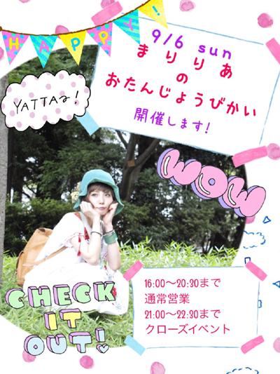 8月29日(土)〜9月5日(土) インダーラのカレーでデトックスイベントのお知らせ 今年は秋が早くて、寂しいので、最後に夏を感じたい! インダーラのイベントを開催する運びとなりました。 生徒も2名がインダーラの民族衣装サリーを着用しています。 イベントメニュー 野菜たっぷりグリル野菜カレー 741円(税抜) グリルカレー+マンゴーかき氷(ハーフ)1204円(税抜) イベント期間内に、 3回食すと、サリー姿の生徒とチェキが撮れます! デトックスまず確実 野菜たっぷりグリル野菜カレー 野菜不足な夏に、野菜を意識せずに 美味しくたっぷり野菜を食べられるカレー。 ベースにタマネギとニンジンをたっぷり使い デトックスにも良いゴマをふんだんに入れたカレー。 さらにカレーに漬け込んだ後に焼いたグリル野菜を2品 グリル野菜は日によって少し変わります。 写真はカボチャとピーマン。 カボチャの甘み、ピーマンの苦味が良いアクセント! 苦手な人はカレーに絡めながら食べてみてください。 一応野菜だけでなくお肉も入っているので、 野菜が苦手な方でも意識せず美味しく頂けると思います。 数に限りががございますので、是非お早めにお越しいただけましたらと思います。 是非、カレーを食べた後のデザートに 9月6日(日) マリリア・バースディ ごきげんよう、マリリアです! 僭越ながら9/6(日)にバースデーイベントを開催させていただくことになりました! 20時半までの通常時間は限定メニューのご提供とお写真の配布、21時からはお店を閉めて申し込んでくださった皆様とゲストキャストと私のお楽しみ会を行います。 つきましては、クローズイベントの詳細を記載しますので、ご都合宜しければぜひご参加くださると嬉しいです!! クローズイベントは基本事前予約とさせていただきます。 大変恐れ入りますが、アカシウス店頭にてお申込みいただけますようお願い申し上げます 満了なんてことはなかなかないとは思いますが、良かったらお申込みは早い目にお願いいたします。 以下、詳細です! 【日にち】 9月6日 (日) 【時間】 通常時間 16:00〜20:30 クローズイベント 21:00〜22:30 【概 要】 ▶︎通常時間(16:00〜20:30) 限定ドリンク 2種のご提供 ※ランダムで被りなしにて、お写真が付きます ▶︎クローズイベント(21:00〜22:30) ウェルカムドリンク・軽食のご提供 簡単なゲーム 記念撮影 皆様のお席にマリリアがお邪魔します(*´艸`*)💕 その他、ちょっと考えてます!✨ 【クローズイベントの参加費】 お一人様 ¥4,500- ※男性・女性問わず一律になります ※予約時にお支払いをお願いします 【クローズイベントのお申込】 アカシウス寄宿舎学園 店頭にて受付いたします。 ☆申込み受付開始→本日8/31(月) ☆ 【クローズイベントのご注意】 複数人のご相席にて、席順のご希望はお承りできません。予めご了承ください。 差し入れなどのご厚意は大歓迎ですが、参加者の皆様と共有できるようなものでお願いいたします。 私だけではなくイベントを盛り上げてくれる優しい生徒も複数参加します!! そんな生徒たちとも普段より密に交流が取れる良い機会なので是非是非ご参加ください!!(*⁰▿⁰*)♡ 皆様のご参加お待ちしてます(*´艸`*)✨ 9月7日(月) 休業日 9月8日(土)〜9月13日(日) 秋の目覚ましボイス 寒くて起きられなくなる冬に向けて目覚ましボイスプレゼント! 秋は、頑張ったあなたへだけのオリジナル。 サンプルボイスは是非貰ってくださいね。 9月12日(土) コハル卒業式 当初、13日(日)と記述しておりましたが、12日(土)の間違いでした。失礼しました。 当日はお待ちがえなきよう、お願い致します。 詳細は後日Blogにて 9月14日(月)〜9月18日(金) イザラードに憧れて カリメーヌ大陸北東に位置し、大陸内ではもっとも古い歴史を持ち、 その歴史の長さ から文化・芸術が盛んなイザラード王国。 歴史の授業でそのイザラード王国のかつての文化に触れた生徒達の間で、 かつてのイザラード故国で流行したという脚線美を強調するスカートに深いスリット の入ったドレスがちょっとしたブームに! 竜王戦争前にはカリメーヌ大陸の覇者でもあった王国の故宮を偲び、イザラード故国 の当時の衣装とスイーツやお茶などを提供するイベントを開催するはこびとなりまし た。 いつもとかなり違う生徒のドレス姿に胸を、ときめかせてみませんか? 生徒がイザラード(チャイナ)衣装に着替えてお出迎えさせて頂きます。 9月19日(土)〜9月25日(金) シルバーウィーク秋のキャンペーン 詳細は後日Blogにて 9月20日(日) 10月のカレンダー発売 今年のカレンダーは、お願い!カレンダー 毎月、テーマを決めて生徒にお願いします。 こんなのやってみて!見たい!普段はあまり見ることのできないテーマを大募集です。 是非、生徒にご提案お待ちしております。 9月26日(土)〜9月30日(水) ユグドラシルのおくりもの アカシウス寄宿舎学園の生徒であるホウミ•桜花•ディース。彼女は学園のすぐ裏にある世界樹ユグドラシル図書館に行くことが晴れた日の日課で
