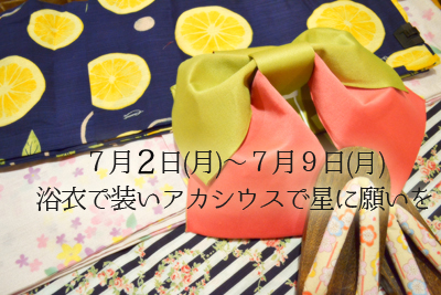=============================== Acasius Royalist メンバー特典 6月にカードを配らせて頂いた(2018/7〜12と記載の) Acasius Royalist メンバーの方々への今月の特典をご案内致します。 7月中の特典 毎週月曜日:チェキポイントでデカチェキが撮影可能。 毎週水曜日:フード1品ご注文で次回同じフード1品無料 男性上級職でなくてもオムライスご注文可能 毎週金曜日: (通常メニューの)別料金ドリンク(ビール等)を頼まれると (通常メニューの)おつまみ一品無料 <イベントメニューはおつまみ的な物であっても対象外> 毎週土日: チェキ半額ポイント<ただし卒業式の日を除く> 7月15日(日):ファンミーティングへ参加できます。 ご注文ご依頼時に、Acasius Royalist Cardを提示してください。 =============================== 7月の休業日 7月3日(火) 7月10日(火) 7月17日(火) 7月24日(火) 7月は火曜日を暫定的な定休日とし、 4日間ほどお休みさせて頂きます。 生徒達もリフレッシュし、より良い接客を心がけたいと思いますので なにとぞ、ご理解頂けたらと思います。 尚、7月31日(火)は営業致します。 =============================== 7月からのシステム変更・新メニュー 新メニュー ★挽きたて淹れたてコヒーネ フリーソフトドリンクの淹れたてコヒーネが 「挽きたて淹れたてコヒーネ」に代わります。 コーヒー豆から挽きたて3日以内の粉にてハンドドリップします。 風味がまるで違うと思うので、暑い中ではありますが、ご堪能ください。 ★パスタの麺 リングイーネ(小平面) を追加。 ◆6月末で終売済のもの されどピクルス パスタソース:ブッタネスカ パスタ麺: ブカティーニ、タリアテッレ システム変更 7月1日(日)から ★チェキの撮影を生徒が行う事とします。 今まで例外的に行ってきたお客様によるチェキの撮影を 当面、生徒が撮影を行うに変更致します。 もし生徒だけを写したいという場合も、別の生徒が撮影させて頂きます。 7月6日(金)より ★女性学割を廃止致します。 今後、学生の方向け(男女共に)へ、値引きとは違う特典の導入を検討します。、 ★雨割りを廃止致します。 ★2人割りを、税込100円引きから、税込200円引きへ変更致します。 ★休日(土日祝日)割り増し料金を設定します。 土日祝日の男性・女性の基本料金を200円値上げさせて頂きます。 平日の価格は変更はございません。 特得チケットの使用は、1枚(1時間分)は、 平日祝日関係なく、1時間分の使用にご利用できます。 よって今後、特得チケットは、平日ご使用されるより、休日ご利用頂いた方がお得にご利用できるようになります。 =============================== 月間イベントスケジュール 7月1日(日) わりと平和な何もない1日 7月2日(月)〜7月9日(月) <7月3日(休)、7月8日(日)遅番除く> 浴衣で装いアカシウスで星に願いを 今年の浴衣のテーマは、?。 しっとり大人の雰囲気をお届けします! 少しだけ早い夕涼みをしに、アカシウスに来ませんか? 短冊にお願いごとを書いてくださいね! 今年も浴衣で着てもらえたらチェキを一緒に撮れますので、 この機会に浴衣に袖を通してもらえたらと思います! またせっかくの浴衣なので、 浴衣生徒のピン写真をTwitterにアップさせて頂きますので のハッシュタグをつけて、面白い!もしくは恥ずかしくなるぐらい素敵!な つぶやきと共に、 #彼女とデートなう #アカシウス のハッシュタッグをつけて、Twitterにアップして頂けたらと思います。 毎日、生徒がハッシュタグを元に、 一番面白かった賞、一番恥ずかしすぎる賞を決め、 後日、最優秀者に、素敵なプレゼントを、お渡ししたいと思います。 7月8日(日) 遅番 ミア卒業式 詳細は後日Blogにて 7月10日(火) 休業日 7月11日(水)〜7月13日(金) 生徒ネ申乗せかき氷 14日より手作りかき氷を開始しますのが、 その前に、悪乗りした生徒アイデアでの ネ申乗せかき氷を作成します。 どんなものが出来るか、美味しく頂けるのか、 是非チャレンジしてみてください。 7月14日(土) 中番 ティオ卒業式 詳細は後日Blogにて 7月15日(日) 夕方 Royalist ご愛顧ファンミーティング 日時: 7月15日(日) 当初19時からを予定していましたが、 2部制へ変更予定 参加費: 無料 参加条件: 2018/7〜12月 期限のRoyalist Cardをお持ちの方 特得チケットを1セットずつ購入された方で、まだRoyalist Cardを受け取ってない方は 特得チケットの金額記載部分の半券2枚をご提示の上、お早目にRoyalist Cardをお受取ください。 最近通い始めた方にも是非ご参加いただけたらと考えております。 ご参加、アイデアのご意見、是非、お待ち申し上げております。 7月16日(月 祝) 早番 イネス卒業式 詳細は後日Blogにて 7月17日(火) 休業日 7月18日(水)〜8月31日(金) 今年もやります。 手作りかき氷 556円(税抜) いきなり暑くなってきたので、かき氷を始めたいと思います。 今年も、生フルーツをたっぷり使用したお手製ソース。 何度も試作を重ね、出来上がりました! もし甘さが足りなかったら、ガムシロップで調整してください。 ソースは、途中で変更の可能性がございますので、お早めに。 第一弾は