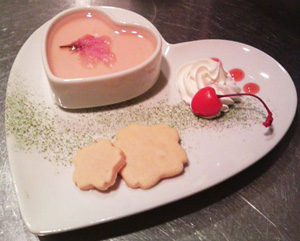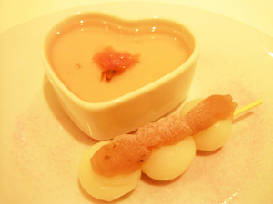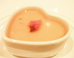 上は桜リキュールのゼリーに、桜の花を添えています。
