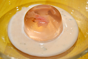 花と香りを閉じ込めた玄妙なる触感の餅を作ってみました。