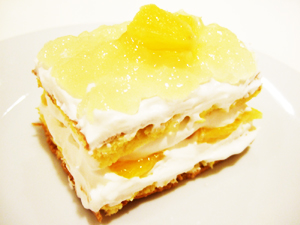 軽くコンポートして蜂蜜漬けにしたオレンジを生クリームと共にはさんだ