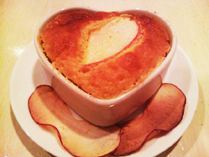 ケーキの甘さ、焼きリンゴの甘酸っぱさのハーモニーを、