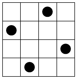 アカシウス寄宿舎学園には夏休みは無い。それでも遊びたい盛りの生徒達を統率するには、時々、課外授業も入れないと集中力が続かないらしい。 教師陣も大変である。 そんな今日は、ユグドラシル図書館の大きな枝の上で、 老司書のアイアコスさんよりオープンエアーな環境で講義が行われている。 アイアコスさん「ウォッホン、みなさん、『女王は争わない』という問題を知っとるかの? 今から200年前… 」 太陽が眩しい素晴らしい見晴らしの環境とはウラハラに眠たい授業は続く… さらに宿題まで…。 旅人の皆様、どうか助けてくださいませ。 アイアコス老司書の問題は、次のようなもの チェスの駒で、クイーン(女王)という駒があるが、 クイーンは、上下、左右、斜め、どの方法にもずっと駒を進められる。 そのクイーンを下のように4マスの中に、他の駒の進路を塞がないように4つ置きなさいというもの クエスト: 挑戦用紙の出題に沿って、答えを記述してください。 獲得ポイント: 3ポイント 達成方法: 挑戦シートに、正しく答えを書いて、生徒に提出してください。 達成条件: 挑戦シートに、正しい答えを書いて、生徒より正解である確認を貰う事。 ルール: 一度本クエストを達成できたお客様は二回目のチャレンジは出来ません。 開始時期: 8月17日(月)16時から 終了時期: 9月15日(火)閉店時まで